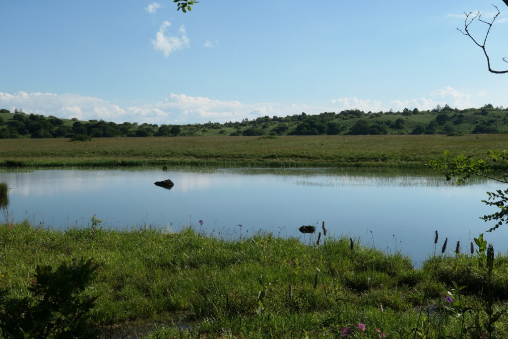 八島ヶ原湿原の中には3つの池があり、上の写真の池は八島ヶ池であり、ビジターセンターに一番近い所にあります。