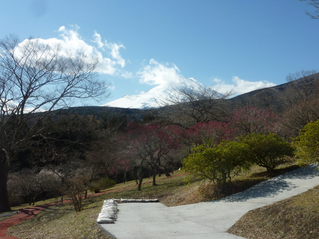 最後に梅と富士山を一緒に撮ってみました。やはりふもとと山の天気の変化は違います。この日は風が強く吹いて、雲の流れが速かったのですが、この瞬間も雲が切れませんでした。