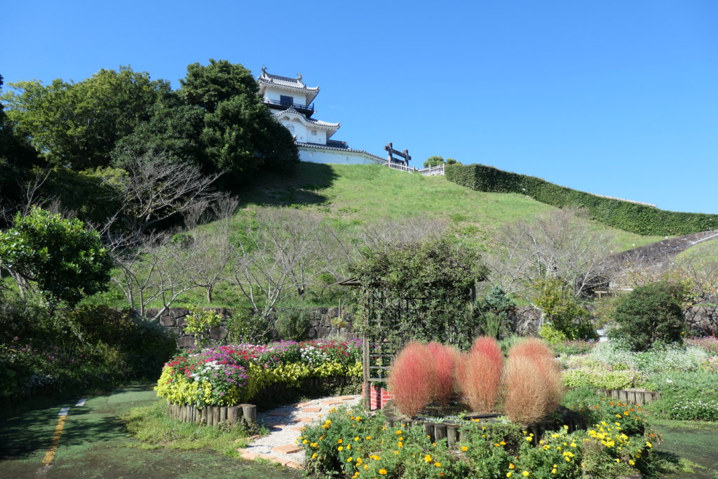 以前に行った時は冬から春ぐらいの時期でしたが、今回夏に来たのが初めてでした。以前と比べると、やはり緑豊かですが、天守閣の前の庭園は花が多く、季節の花が彩っていました。