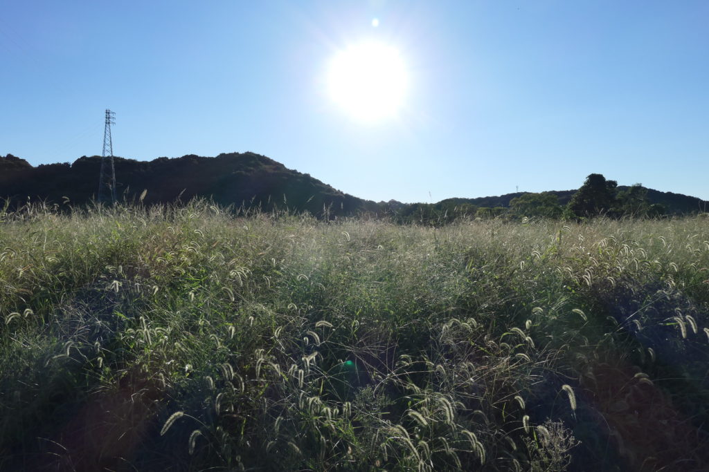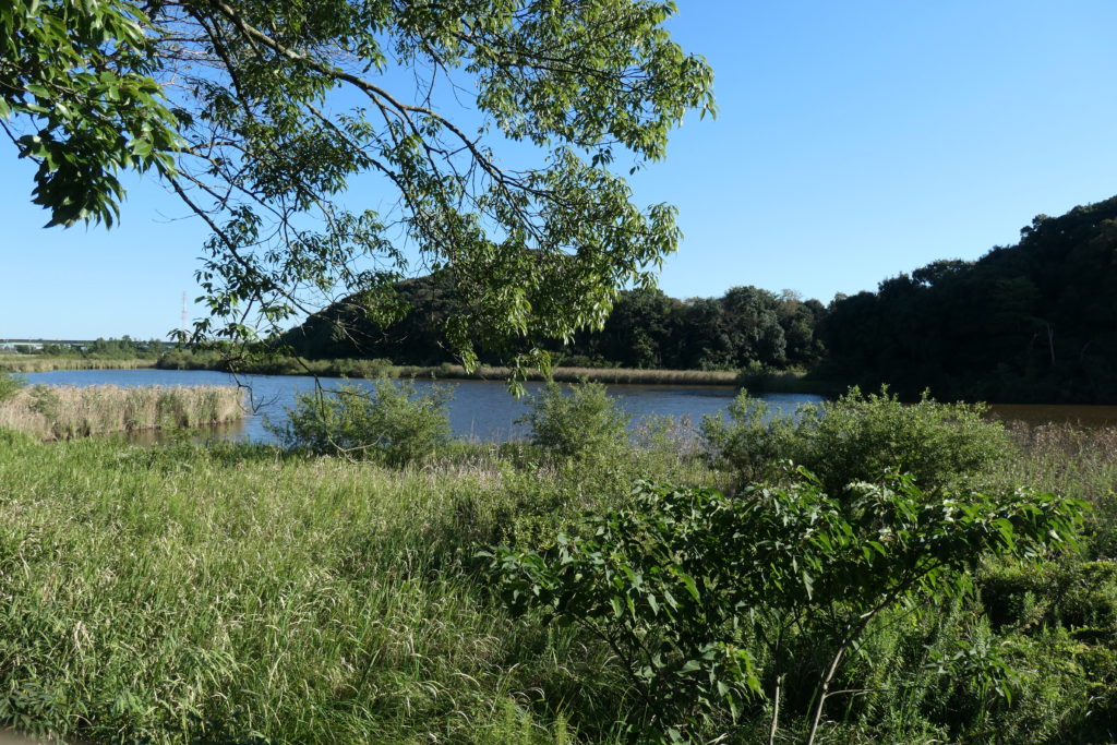 沼の周りはやはり緑がたくさん茂っていました。緑が多くて夏らしい印象ですが、これから秋に入る準備として、ススキが少しだけ穂が出てきています。夏から秋へ季節が流れていることを植物達が知らせているようです。