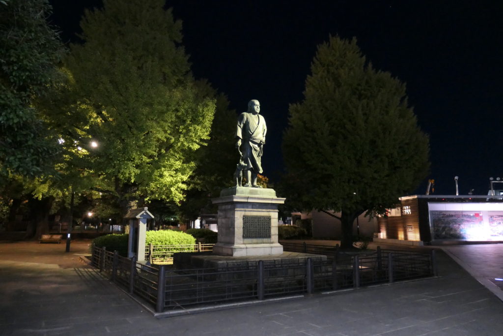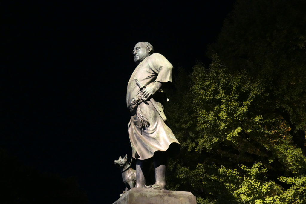 着いたときは夜でした。暗くて不忍池の撮影は暗くて困難であったので、諦めた時に西郷隆盛像が光っていたため、撮影しました。