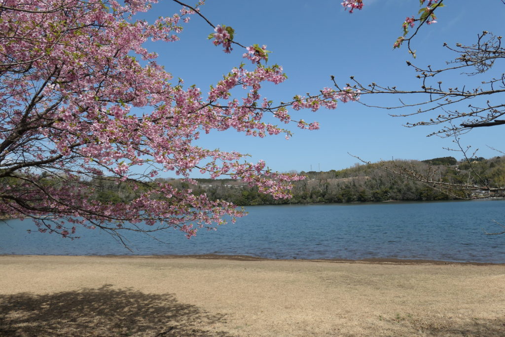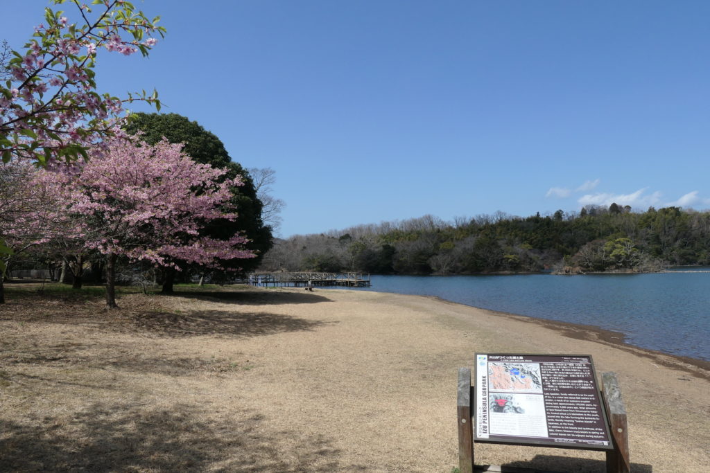 ボートな桟橋から南側へ周り、与謝野晶子夫妻の歌碑がある湖畔です。桜が咲く早い時期であったため少数でしたが、この辺りも咲き始めていました。