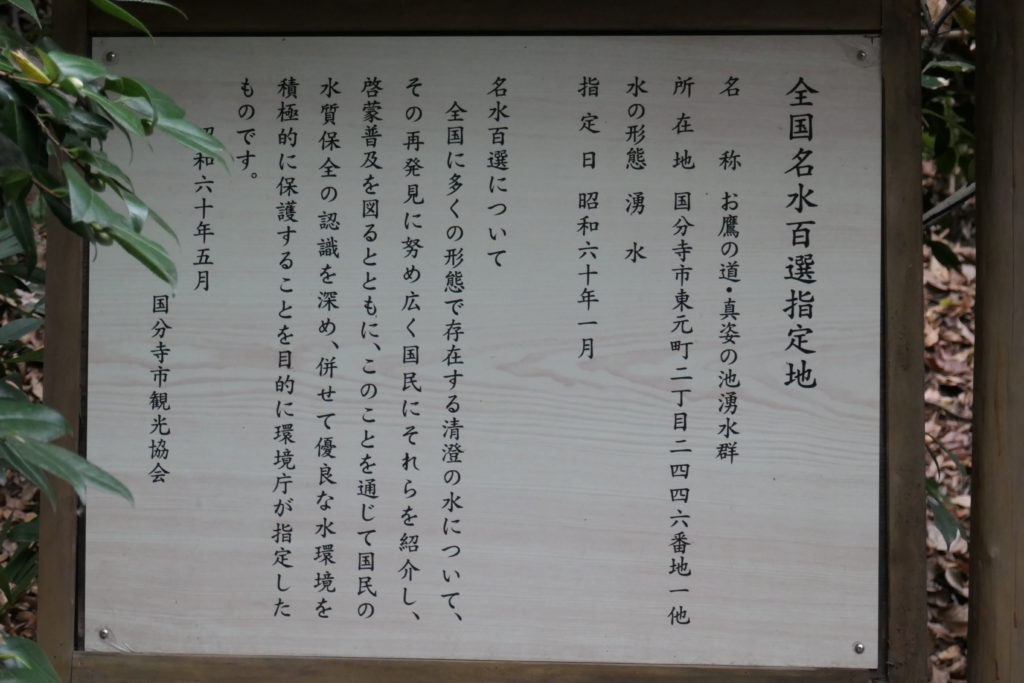 真姿の池の湧水群の水は、国分寺市内に流れる野川に合流し、世田谷区二子玉川付近で多摩川へ流れていきます。