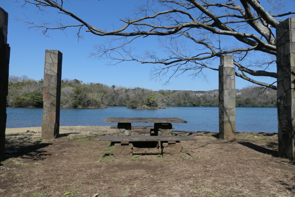 一碧湖は「伊豆の瞳」と呼ばれていて、日本百景にも選ばれています。有名人も訪れる観光地であって、湖畔に与謝野晶子夫妻の歌碑が建てられ、テーブルが写っている写真の近くにあります。