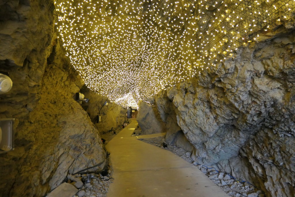 洞窟の内部は照明があるものの奥へ進むと、スタッフの方からろうそくを渡され、片手で持って進んで行きます。現在は石仏像が展示されています。