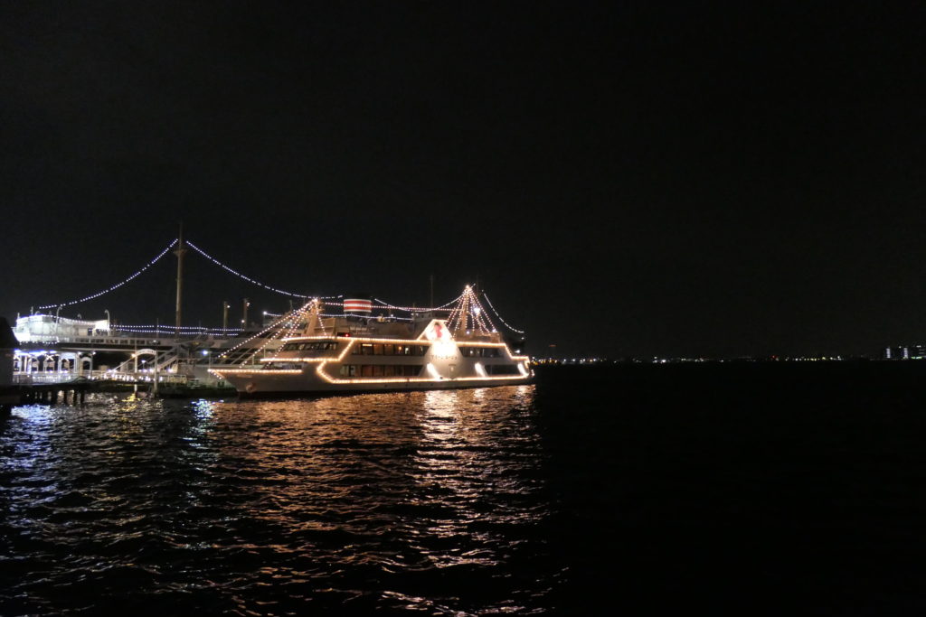 夜は何といっても夜景がきれいに見えます。みなとみらいの高層ビル、ランドマークタワーや観覧車、赤レンガ倉庫のライトアップが全て見ることができます。