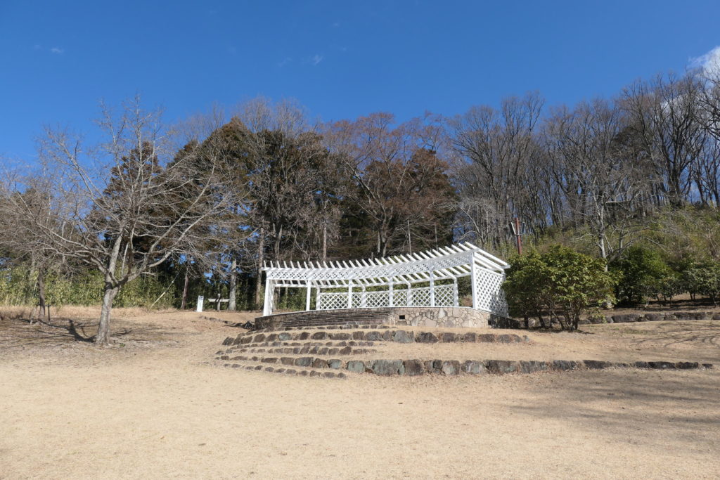 山の中腹(公園内)にはいくつかこのような広場があります。おおやま広場と呼ばれ、ステージ上からは大山方面の景色が見えます。
