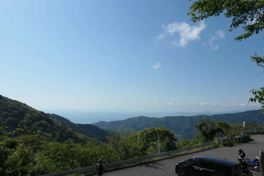 GW当日は天気に恵まれ、朝9時台で既に多くのライダーが休んでいました。椿台駐車場の裏に高台があり、そこから伊豆半島と相模湾に浮かぶ初島が見えました。とても気持ち良かったです。