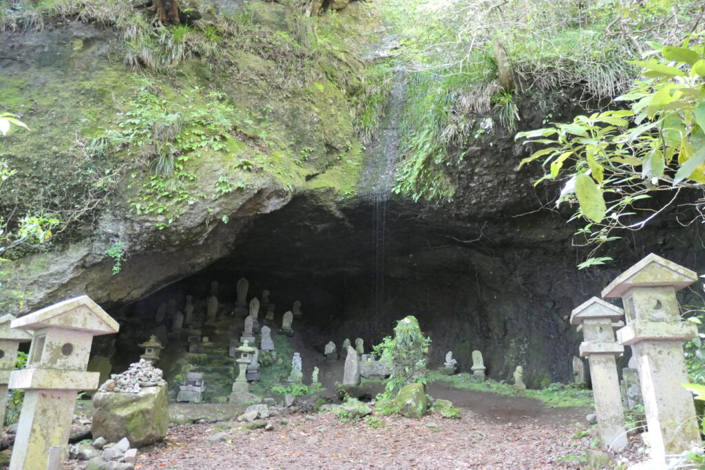 この窟の周辺は、箱根の外輪山による噴火の溶岩でできています。