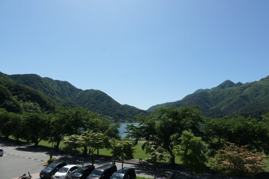 湖の側にも出れるため、河口湖を間近で見ることもできます。