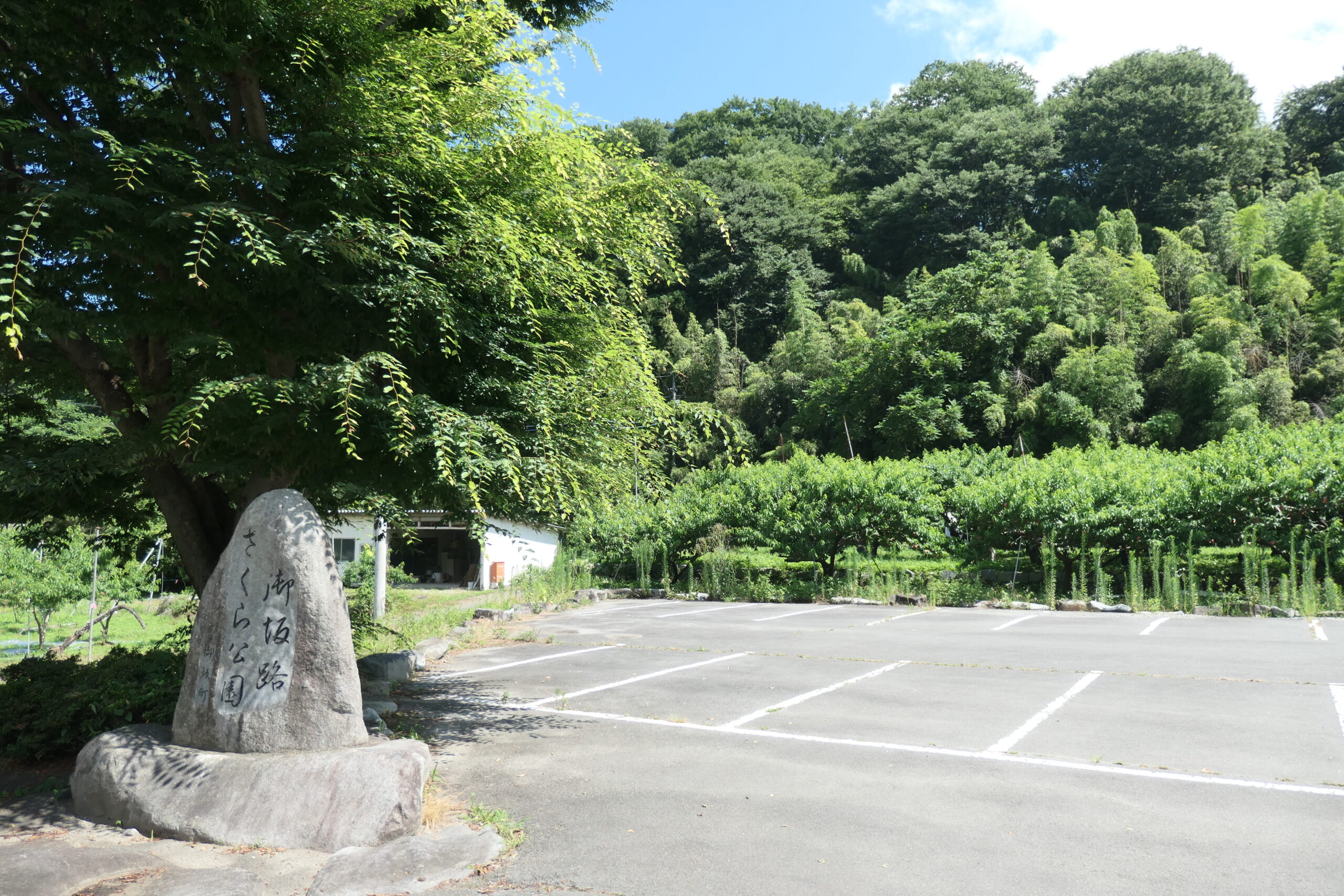- 御坂路さくら公園の案内看板が見えたら、斜め左に進む。