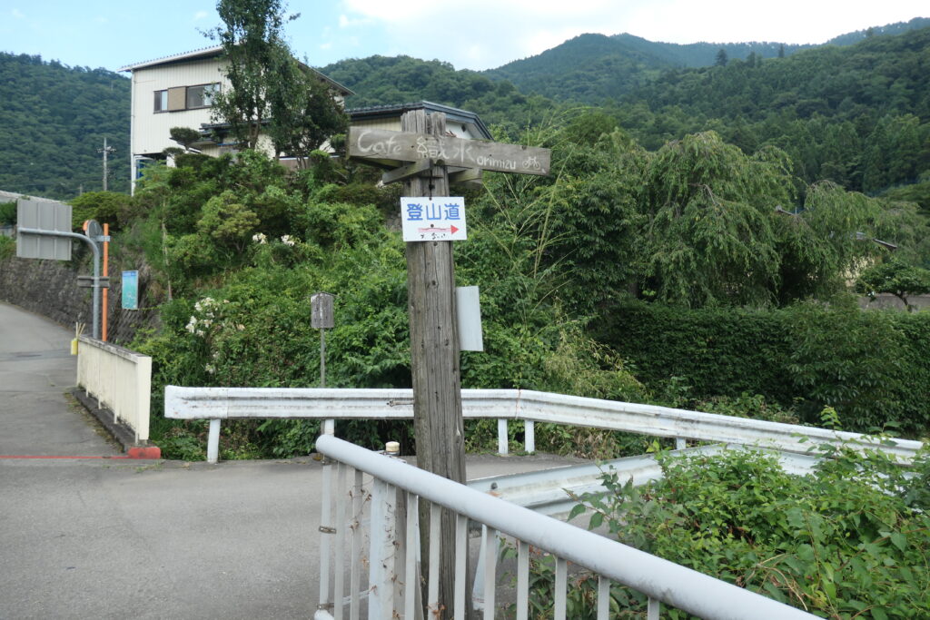 国道139号線に出て、今度は北へ歩いて行きます。落合橋を渡ると、九鬼山の登山口に到着です。