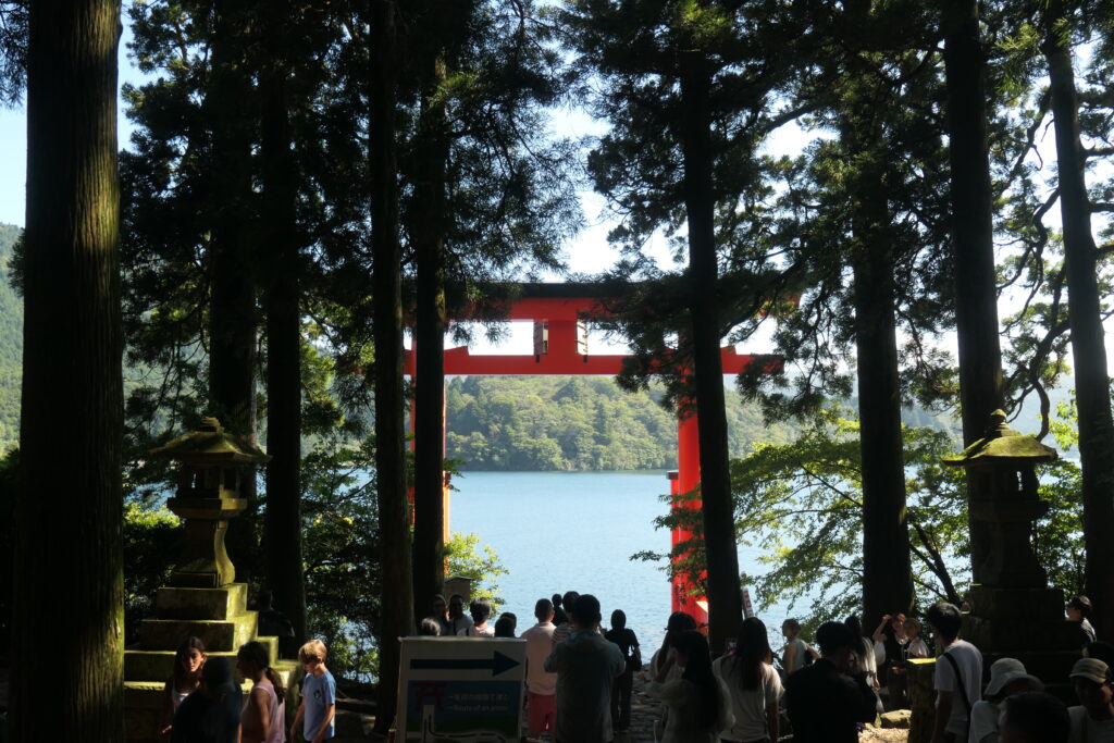元箱根港から北へ、神社通りを進みます。1㎞弱にあります。元箱根港から見えたあの鳥居は、写真撮影のために行列ができていました。自分はこの辺りで写真撮ってから、戻って再出発しました。