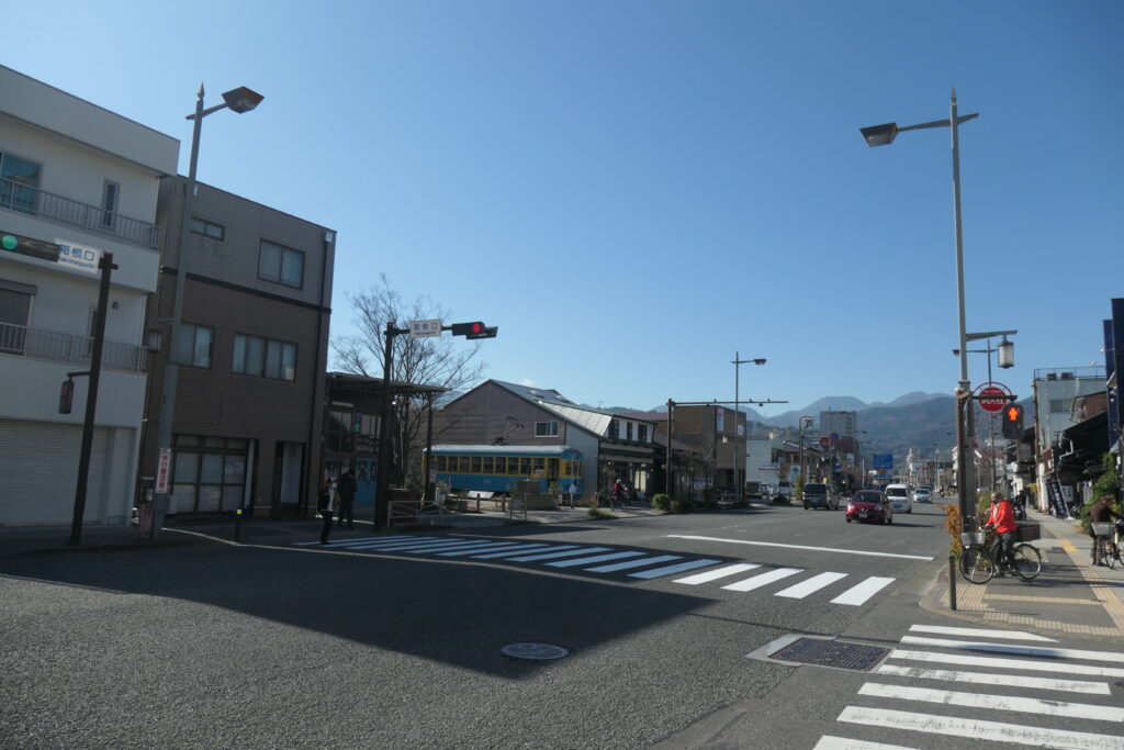 太平洋岸自転車道である国道1号線の、箱根口交差点で折り返して、漁港の駅TOTOCO小田原へ戻りました。箱根板橋駅から1km、水色の電車が目印です。