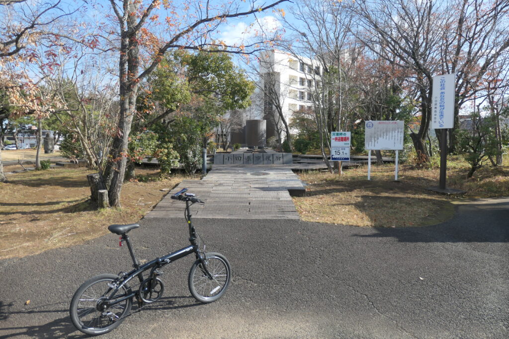 今回のスタート&ゴールは、小田原市役所にしました。木々の奥に庁舎があります。こちらの市役所では、シェアサイクルが利用できるので、サイクリングの拠点として最適です。