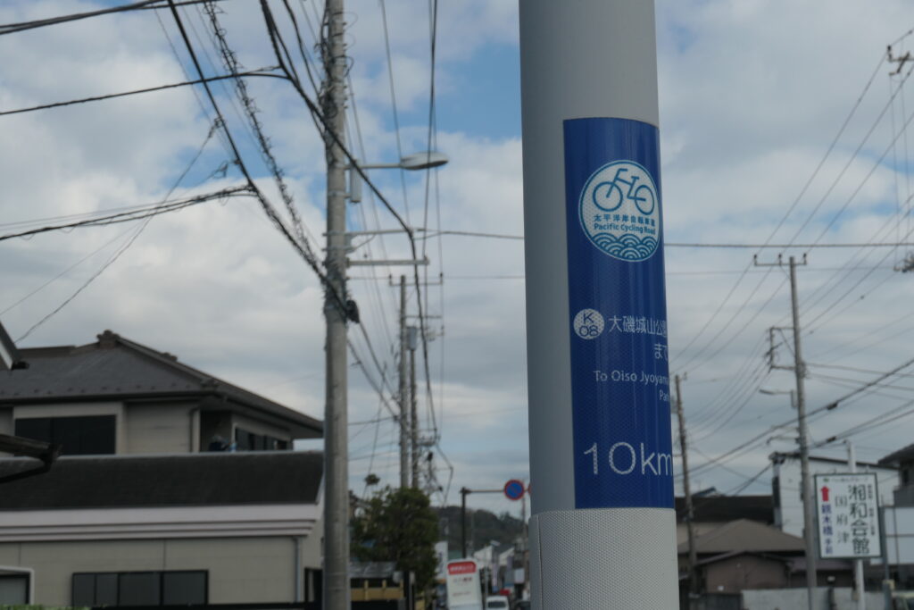 大磯城山公園まで10kmと書かれています。次の目標です。あと1,2回国道1号線に沿って行けば、たどり着くと思います。