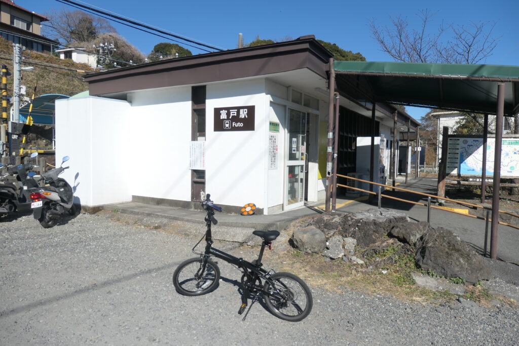 あとは、太平洋岸自転車道を南へ進むのみです。まずは、通り越した富戸駅に寄りました。川奈駅から富戸駅の区間は、結構駅間が離れています。