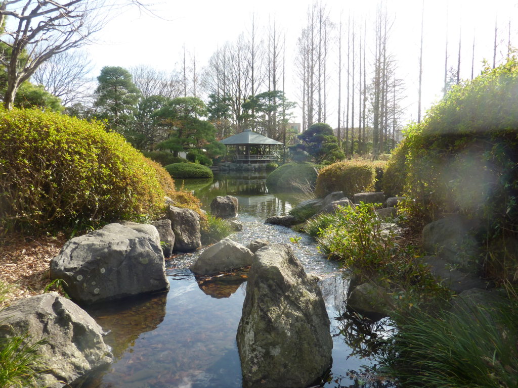 最初に南側にある庭園から見てきました。中央に大きな池があり、様々な方向から撮影してみました。撮影時期が先月だったので、花が咲いておらず、緑も少なめでしたが、松の木や岩が力強い印象で映えていて、個人的に楽しめました。