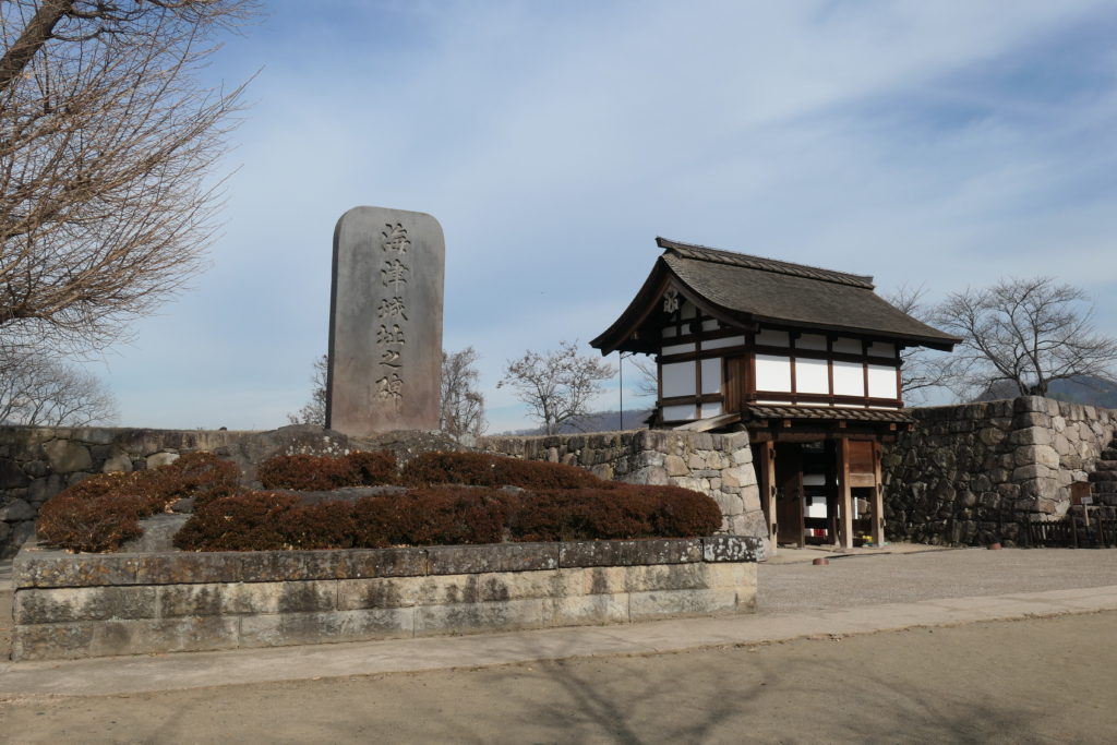 写真には海津城と書かれている石碑がありますが、戦国時代には海津城と呼ばれていました。お城の周辺は千曲川が流れていて、千曲川の向こうに川中島という地域があります。川中島の戦いの舞台となる場所です。
