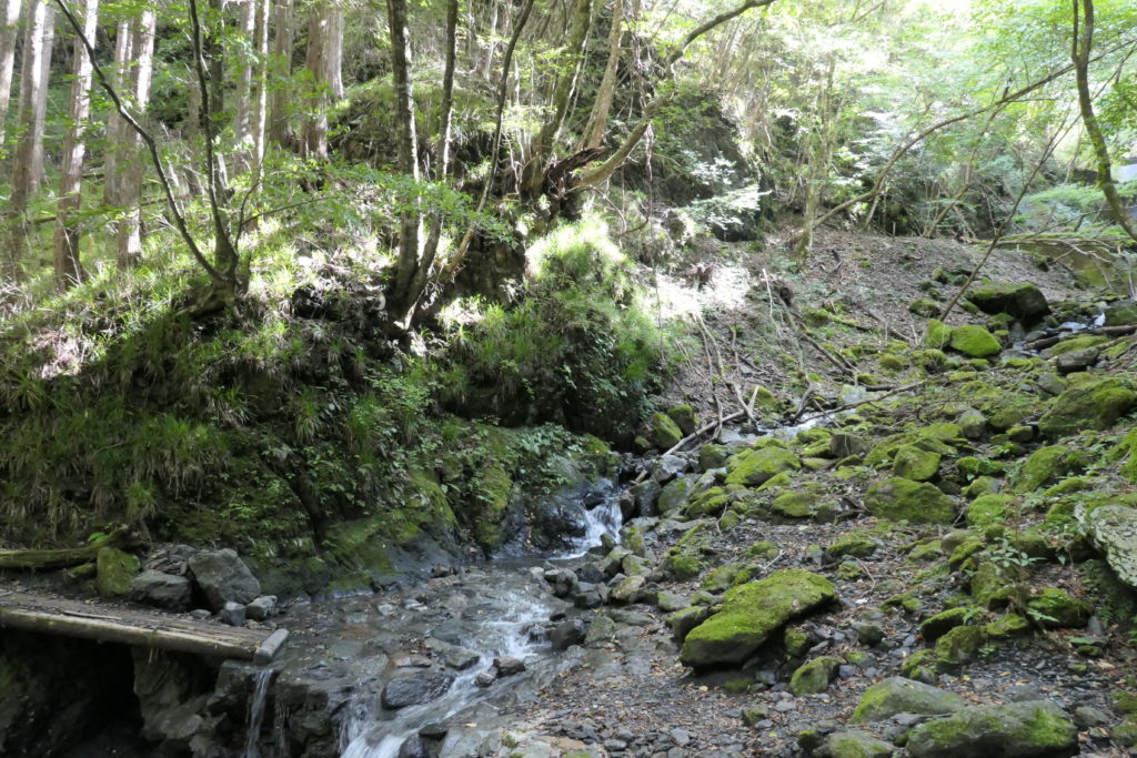 三つ目の橋自体はしっかりとした橋ですが、この周辺から道が狭くなっています。この橋から先はすれ違いができないような道が続き、一回だけ横の岩か木につかまって歩いたことを覚えています。また、ここまでの道中の道はぬかるんでいなかったのですが、この先はぬかるんでいて足場が悪い状態でした。写真を撮る余裕はありません。