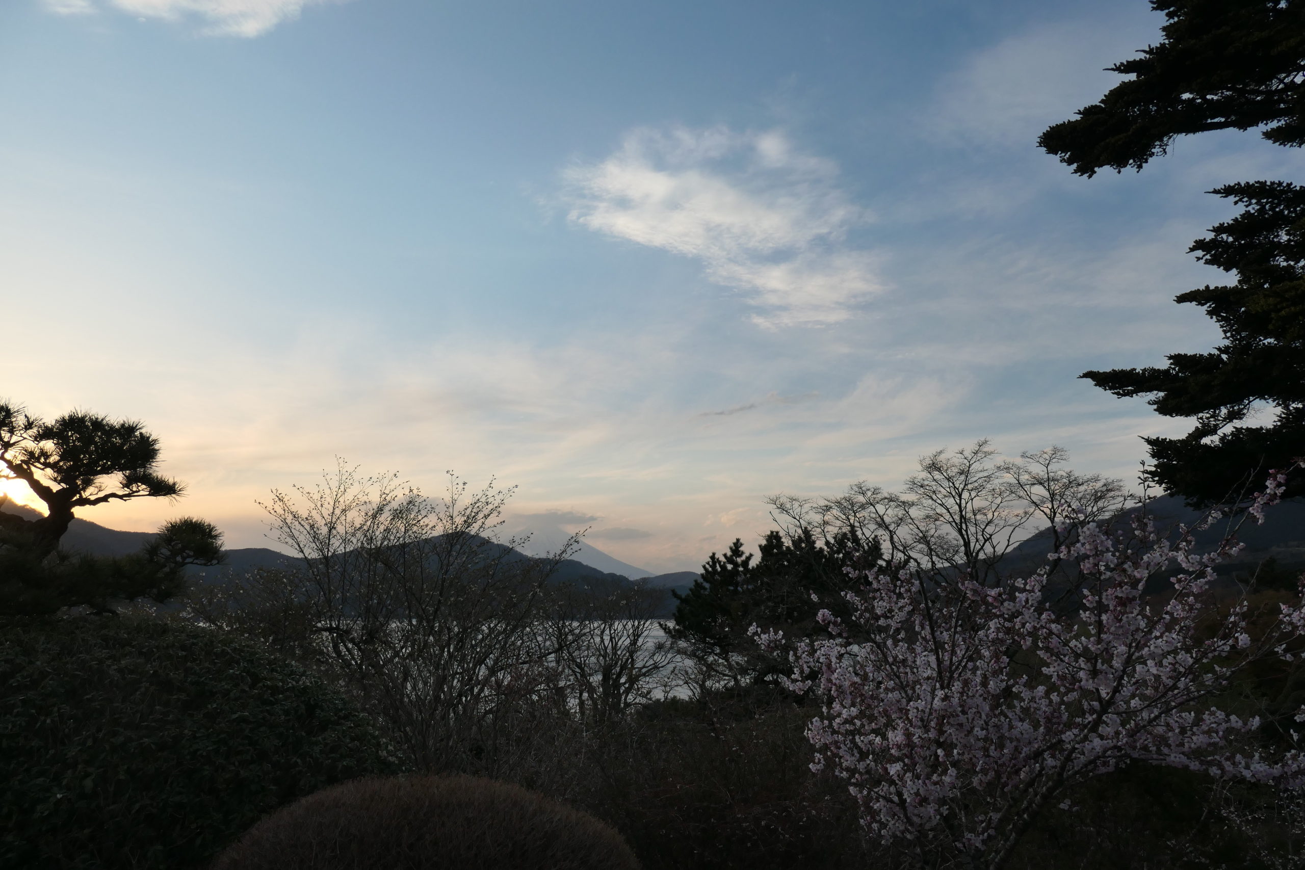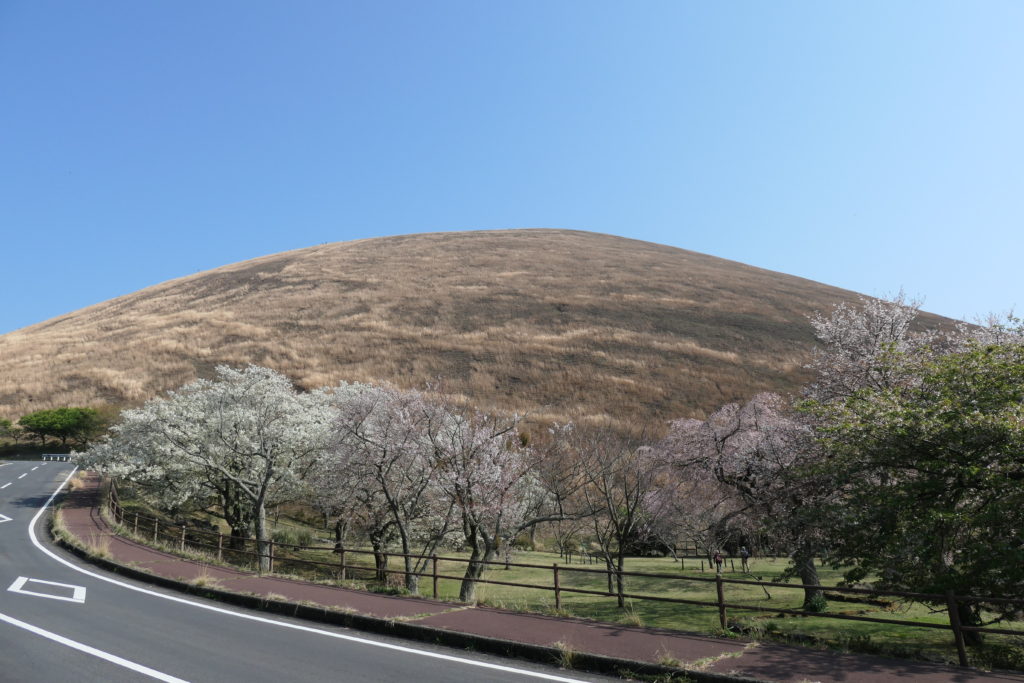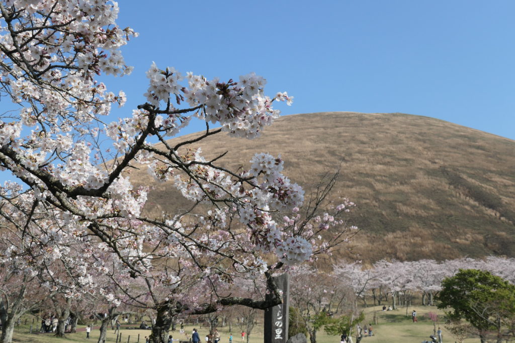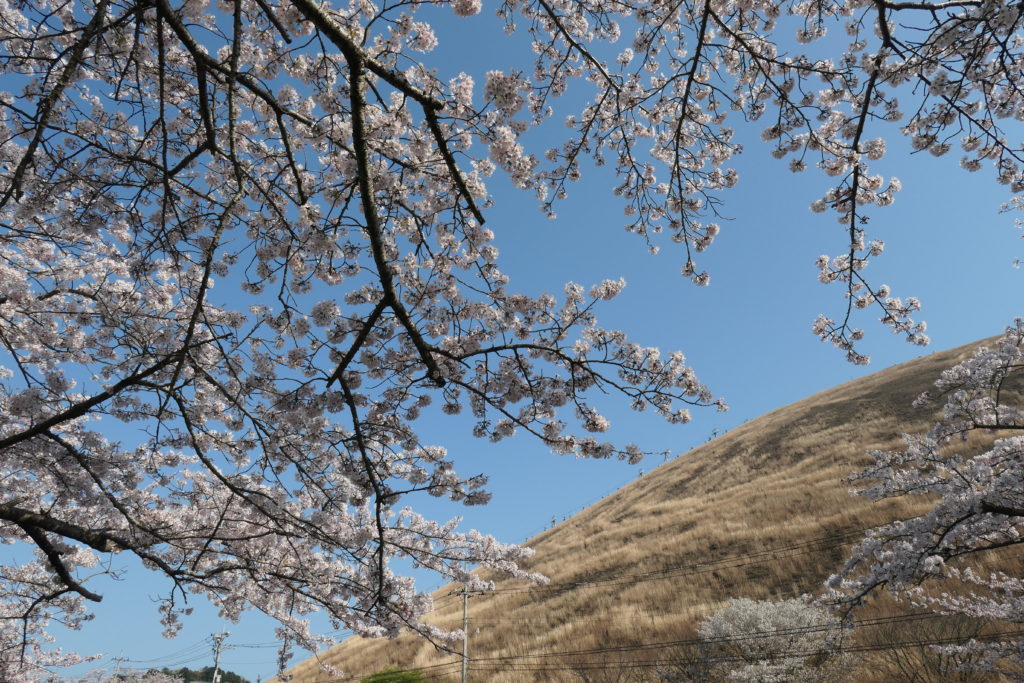 続いて伊東市にあるさくらの里へ行きました。後ろの大室山は2月に、春の行事である山焼きを終えて、香ばしい色でした。麓のさくらの里は満開で、花見客がたくさんいました。